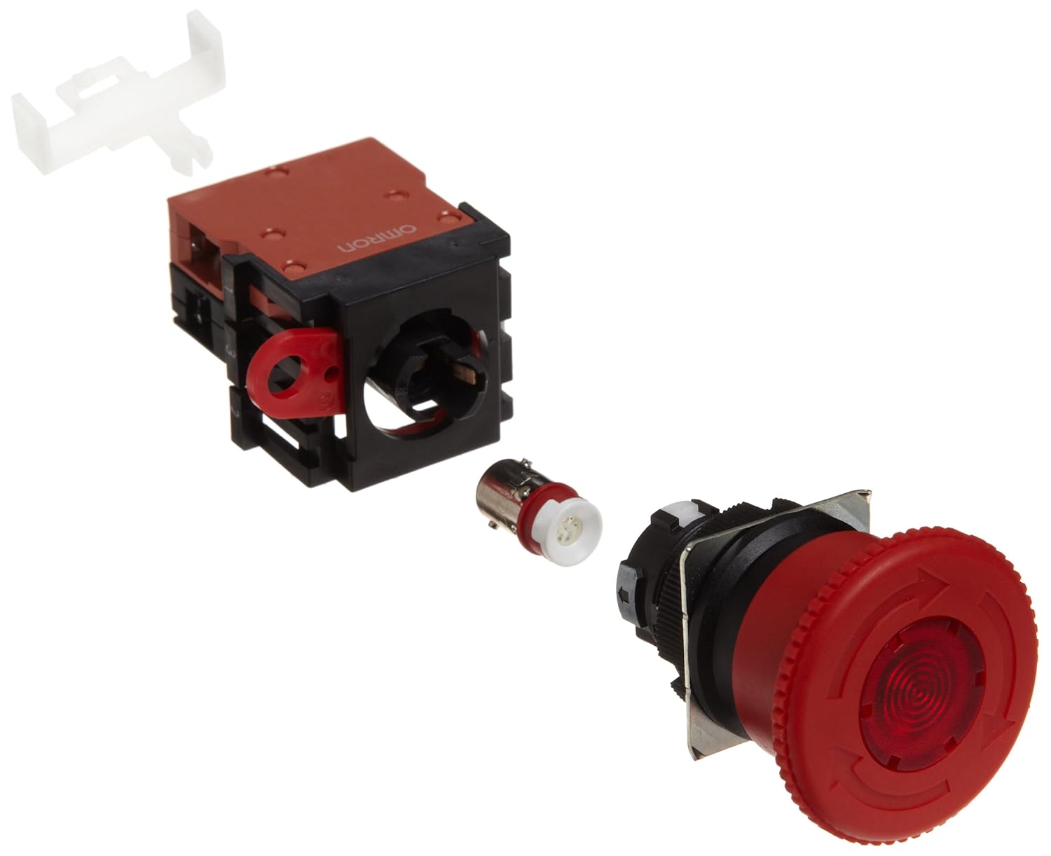 Omron A22EL-M-24A-01 Emergency Stop Operation Unit and Switch, Screw Terminal, IP65 Oil-Resistant, LED Lighted, Push-Lock Turn-Reset Operation, Red, 40mm Diameter, 24 VAC/VDC Rated Voltage, Single Pole Single Throw Normally Closed Contacts