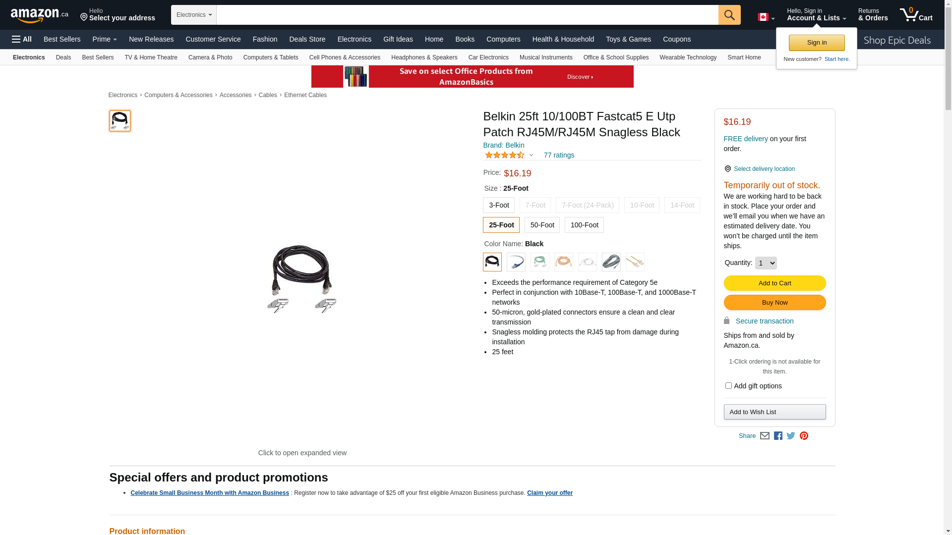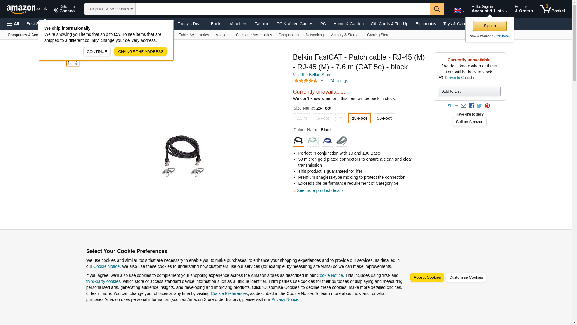Belkin 25ft 10/100BT Fastcat5 E Utp Patch RJ45M/RJ45M Snagless Black