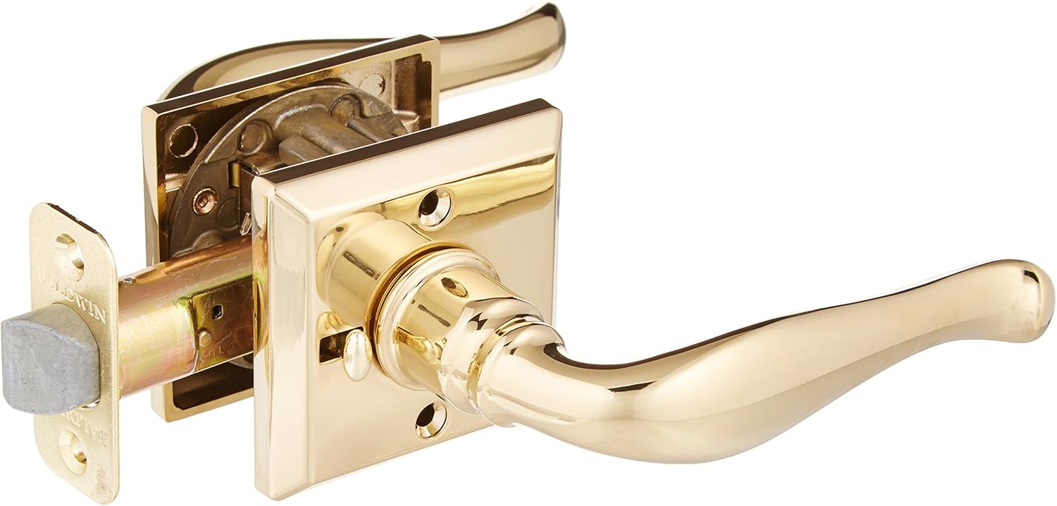 Baldwin Reserve PVDECTSR003 Privacy Decorative Lever and Traditional Square Rose with 6AL Latch and Dual Strike Lifetime Brass Finish