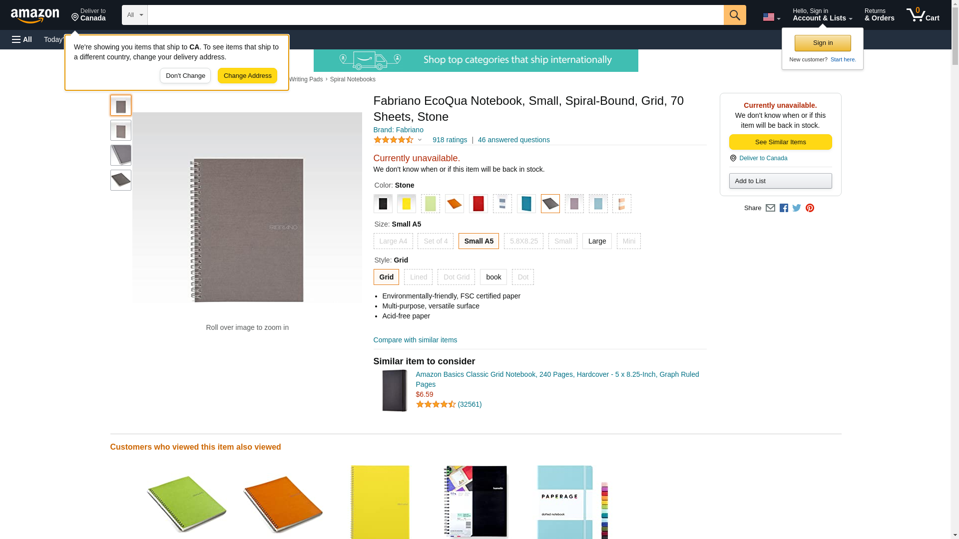 Fabriano EcoQua Notebook, Small, Spiral-Bound, Grid, 70 Sheets, Stone