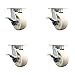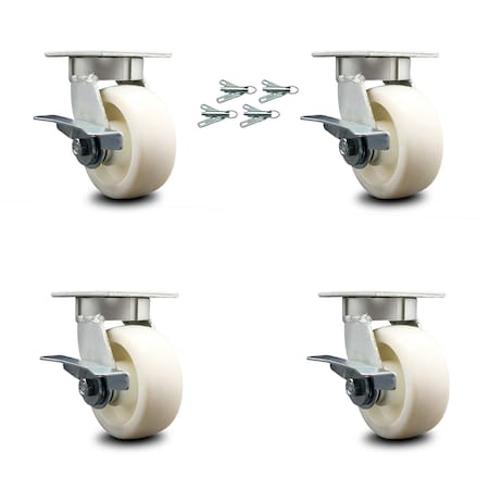 Kingpinless Nylon Swivel Top Plate Caster Set of 4 w/5" x 2" White Wheels - Includes 4 Swivel w/Side Lck Brakes & Bolt on Swivel Locks - 3600 lbs Total Capacity - Service Caster Brand