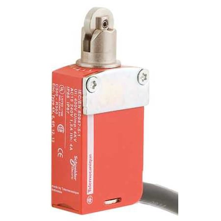 - <b>Price For:</b> Each <b>Connection Type</b>: 6.6 ft. Dead End Cable <b>Contact Form</b>: 1NC/1NO <b>Actuator Style</b>: Plunger, Roller <b>Height</b>: 2.77" <b>Standards</b>: UL, CSA <b>Description/Special Features</b>: Plastic Cover, Secured by 5-Lobe Socket Head Safety Screw, Plunger Head <b>Cable Length</b>: 6.6 ft. <b>Movement</b>: Horizontal <b>Body Material</b>: Zamak <b>Depth</b>: 0.63" <b>Width</b>: 1.18" <b>AC Contact Rating</b>: 1.5A @ 300V
