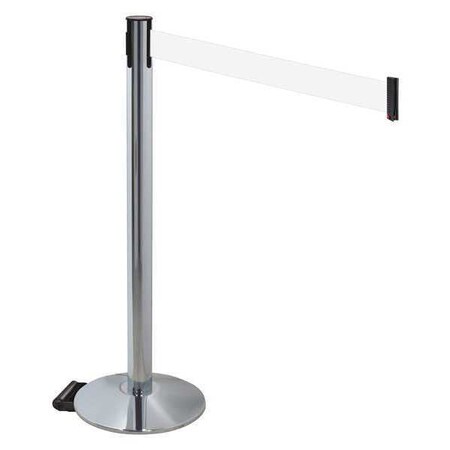 Barrier Post with Belt, Post Material Aluminum, Post Finish Polished Aluminum, Post Height 40 in, Post Dia. 2 1/2 in, Base Type Sloped, Base Dia. 14 in, Base Material Cast Iron, Base Finish Polished Chrome, Number of Belts 1, Belt Length 10 ft, Belt Color White, Belt Message None, Belt Width 3 in, Includes (2) Wheels, For Use With Portable Posts Mfr. No. SUB-ME, SUB-SHOOK, SUB-WH, RE, Indoor, ADA Compliance No