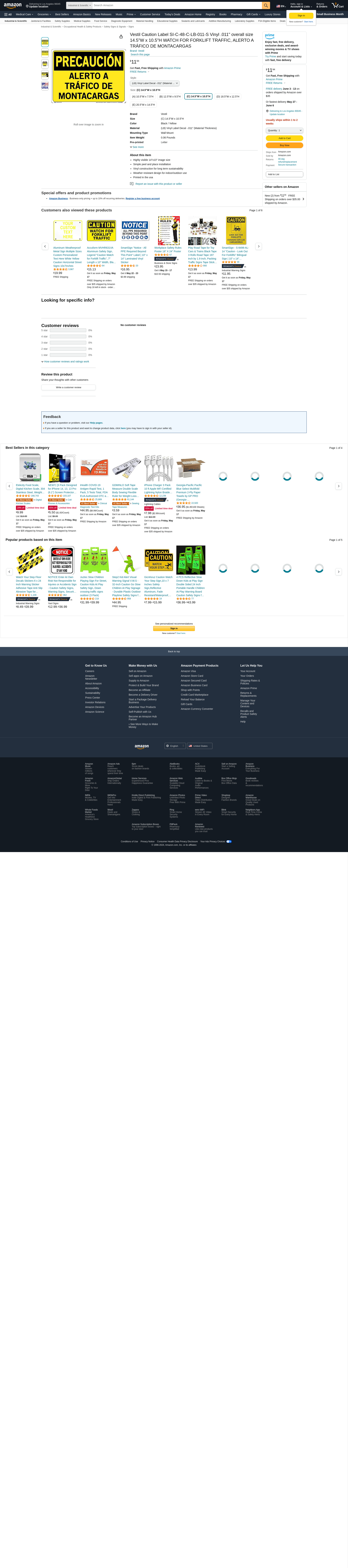Vestil Caution Label SI-C-48-C-LB-011-S Vinyl .011" overall size 14.5"W x 10.5"H WATCH FOR FORKLIFT TRAFFIC, ALERTO A TRÁFICO DE MONTACARGAS