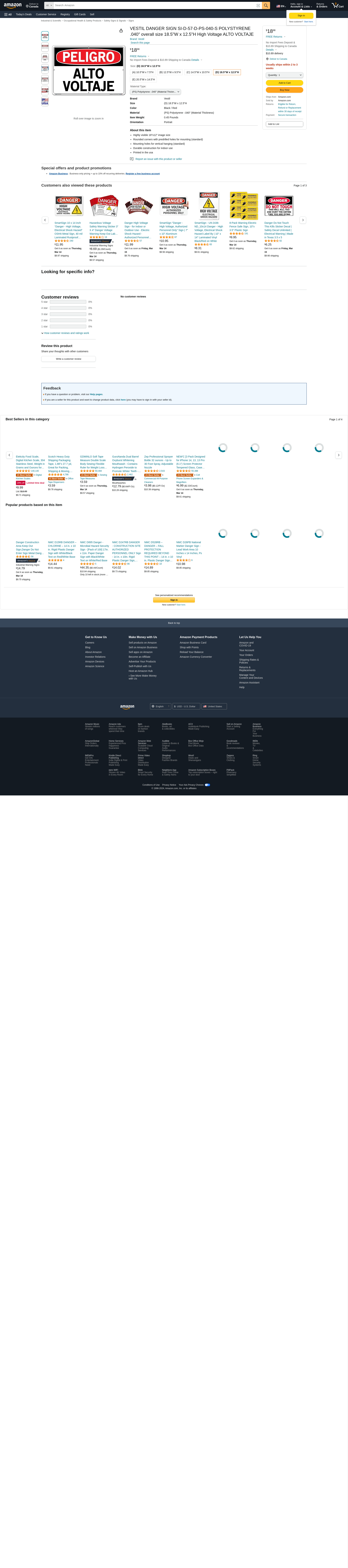 VESTIL DANGER SIGN SI-D-57-D-PS-040-S POLYSTYRENE .040" overall size 18.5"W x 12.5"H High Voltage ALTO VOLTAJE