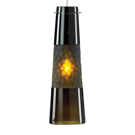 Transparent glass cone with hand-etched band. Includes (1) 50 watt low-voltage GY6.35 base Xenon bi-pin lamp or 8 watt replaceable 500 lumen 80 CRI 3000K LED SORAAr module and 6' of field-cuttable suspension cable. For use with 24 volt transformer, add su