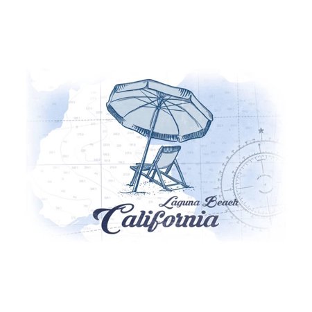 <ul> <li>Title: Laguna Beach, California - Beach Chair and Umbrella - Blue - Coastal Icon</li> <li>Artist: Lantern Press</li> <li>Product Type: Art Print</li> </ul>