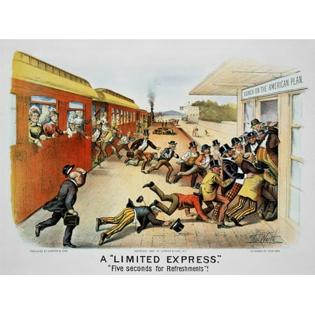 Limited Express 1884 Na Limited Express Five Seconds For Refreshments Lithograph Cartoon 1884 By Currier & Ives Rolled Canvas Art - (18 x 24)