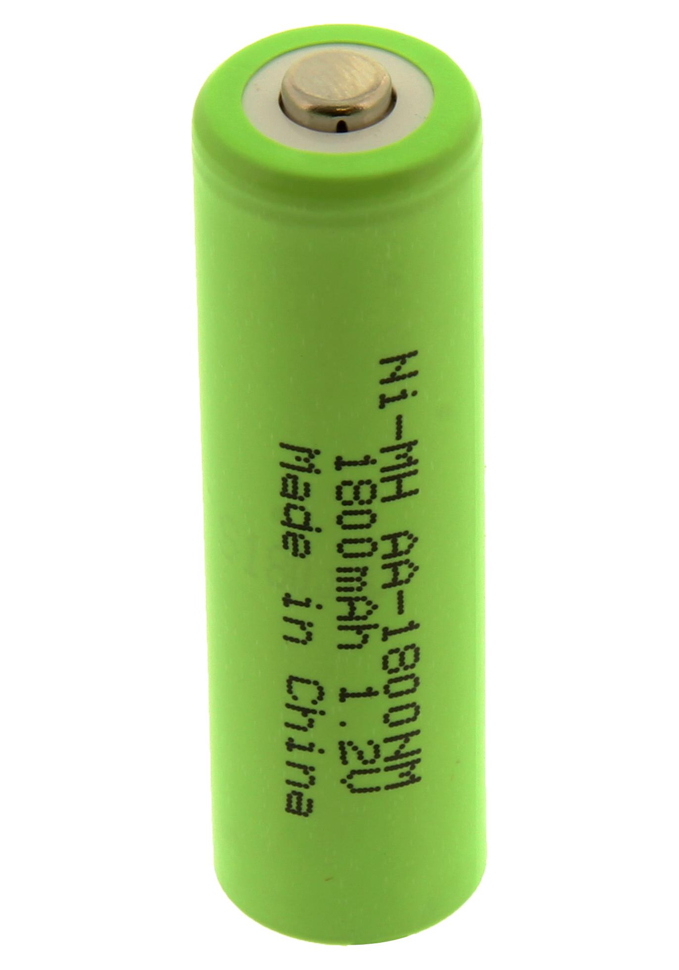 NiMH AA Battery 1.2V 1800mAh <br><br>Why buy and throw away hundreds of batteries? Now you can reuse longer-lasting, money saving NiMH rechargeable batteries instead! They feature twice the power of NiCad batteries, so they're ideal for power-hungry devices like digital cameras and camcorders. <br><br>Features: <br>Lasts 10-30 times longer than rechargeable alkaline! <br>AA <br>1.2V <br>1800mAh <br>Consumer tip: 1.9"L x 1.30"Dia.