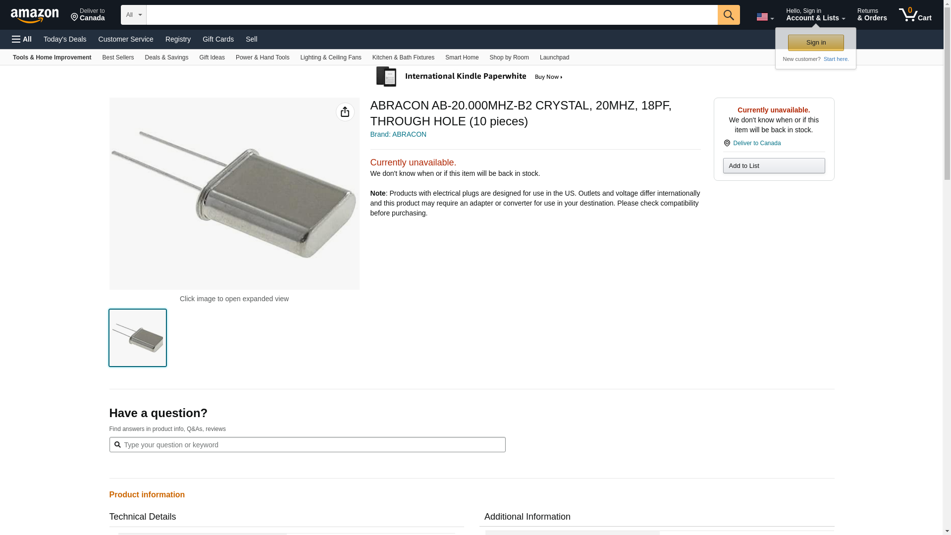- Price For: Each Frequency: 20MHz Frequency Tolerance: ± 20ppm Load Capacitance: 18pF Operating Temperature Min: -20°C Operating Temperature Max: 70°C Crystal Mounting Type: Through Hole Crystal Case Type: HC-49/U RoHS Compliant: Yes
