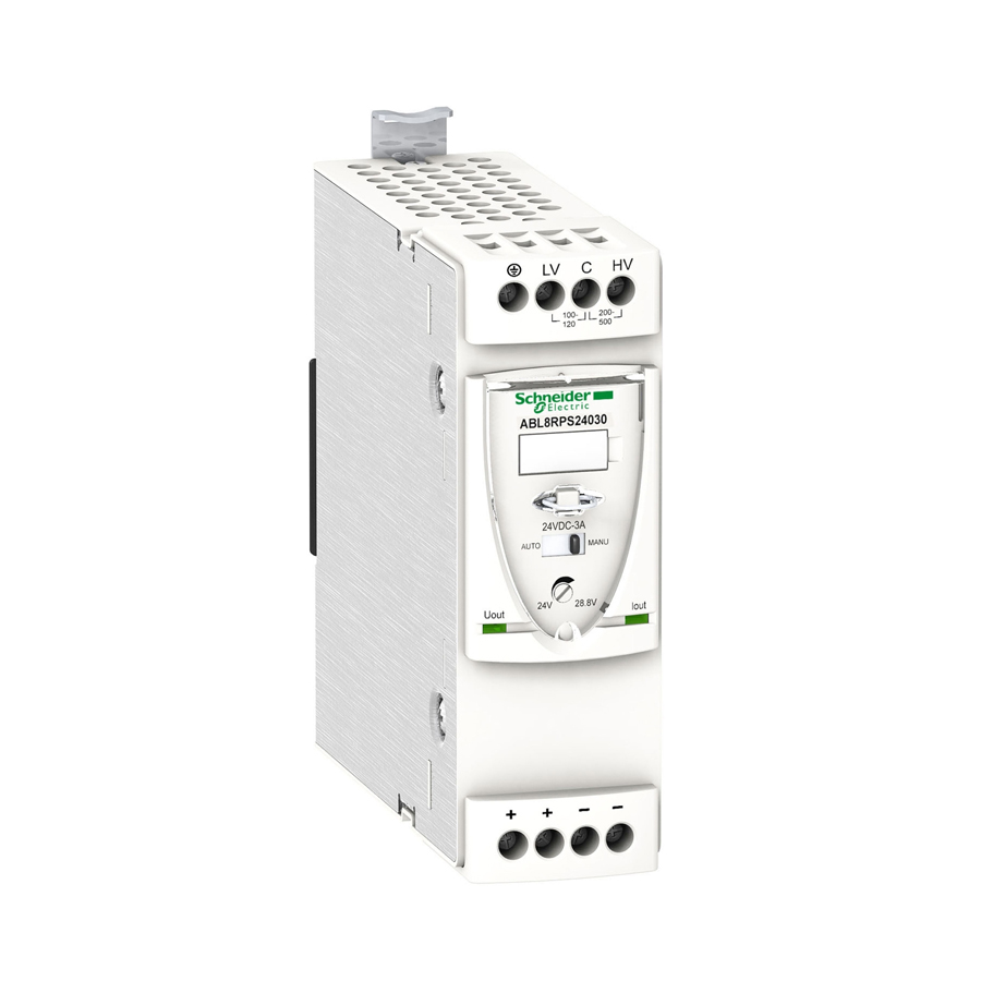 ABL8RPS24030 | SCHNEIDER Power Supply, Regulated SMPS, 1 OR 2 Phase, 100-500V, 24V, 3A