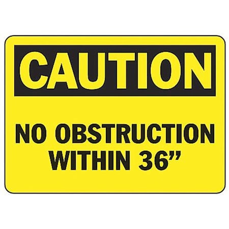 Accuform, MVHR673VS, 7" x 10" OSHA Caution Safety Sign "No Obstruction Within 36"" Adhesive Vinyl Features: Flexible 4-mil thick vinyl with acrylic adhesive Non-glare surface printed Moisture resistant Service temperature range: -40 to 176 F