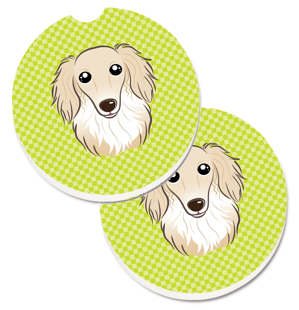 Carolines Treasures BB1274CARC Checkerboard Lime Green Longhair Creme Dachshund Set of 2 Cup Holder Car Coaster