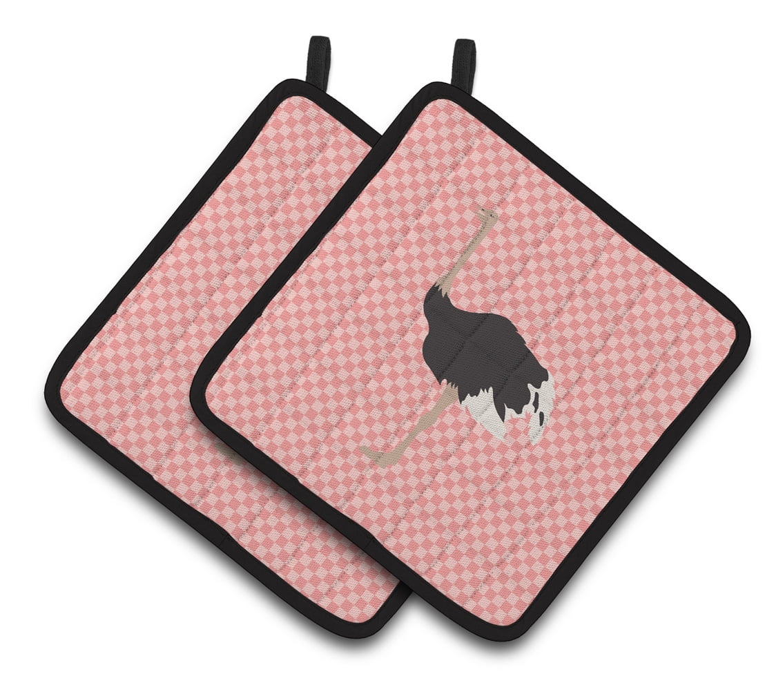 Caroline's Treasures BB7924PTHD Common Ostrich Pink Check Pair of Pot Holders , 7.5HX7.5W, Multicolor