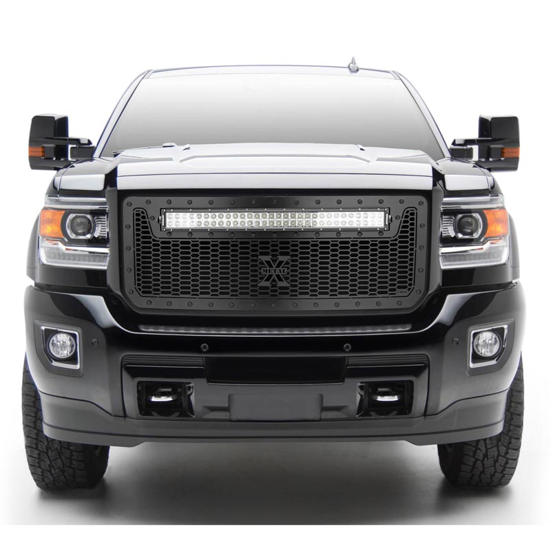 T-Rex Grilles 2015-2019 Sierra HD Stealth Laser Torch Grille, Black, 1 Pc, Insert, Black Studs with (1) 30" LED - PN #7312111-BR