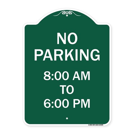 No Parking 8-00 Am to 6-00 Pm, Green & White Aluminum Architectural Sign
