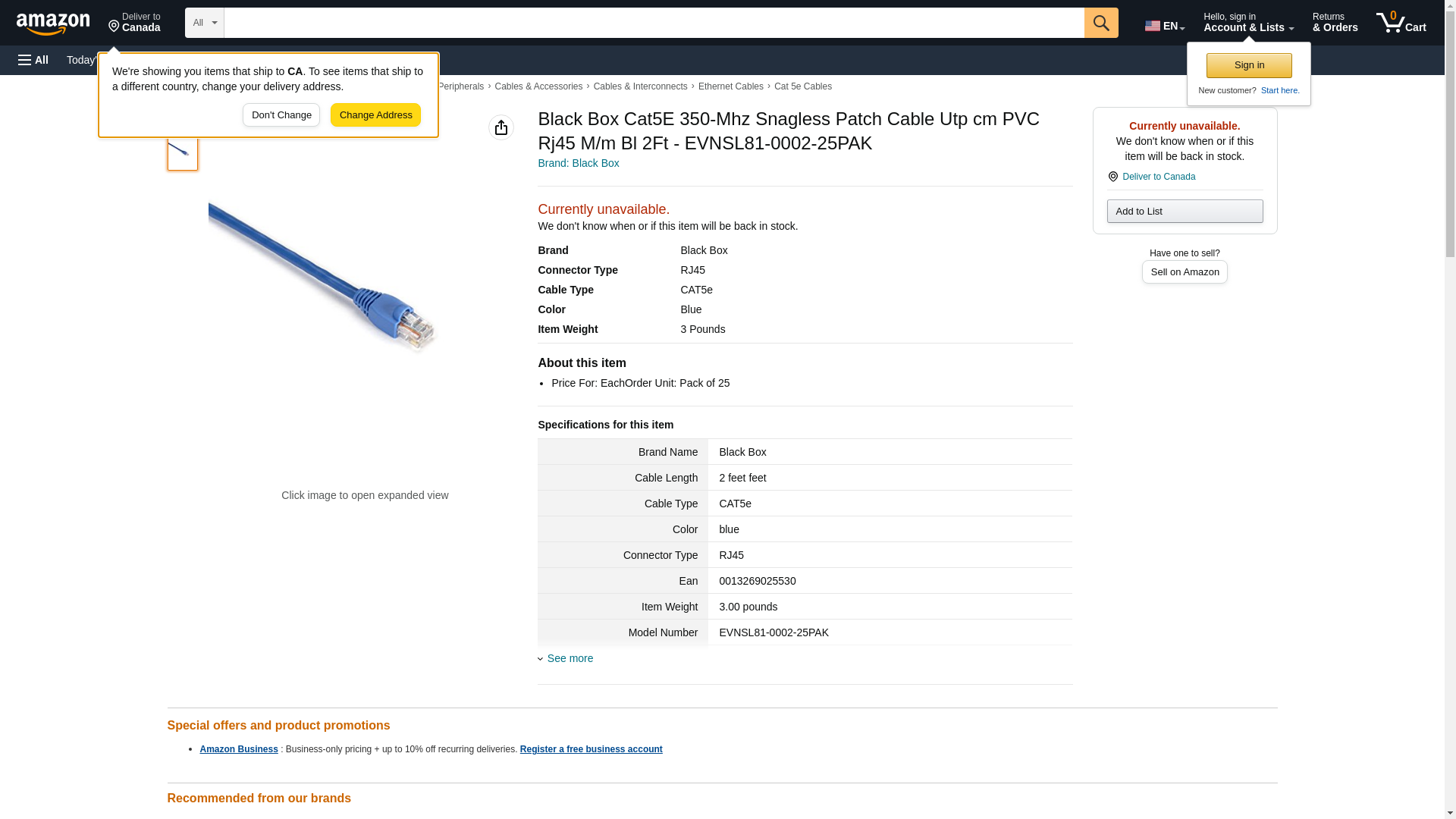Black Box Cat5E 350-Mhz Snagless Patch Cable Utp cm PVC Rj45 M/m Bl 2Ft - EVNSL81-0002-25PAK