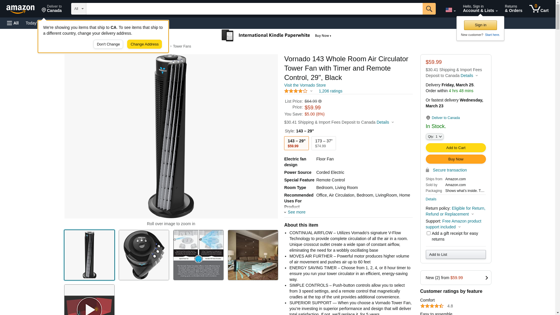 Vornado FA1-0026-06 29" Tower Fan with Remote