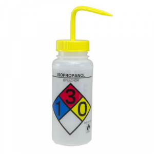 | Feature | <b>Price For:</b> Each <b>Cap Material</b>: Polypropylene <b>Bottle Material</b>: LDPE <b>Item</b>: Wash Bottle <b>Wash Bottle Style</b>: Standard Spout <b>Imprinting</b>: Isopropanol <b>Venting</b>: Non-Vented <b>Cap Color</b>: Yellow <b>Color</b>: natural <b>Capacity</b>: 500mL <b>Height</b>: 8-43/50" <b>Mouth</b>: Wide <b>Diameter</b>: 53mm <b>Opacity</b>: Translucent <b>Country of Origin (subject to change)</b>: United States |
