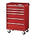 'Rolling Cabinet, Waterloo Series, Width 26 In., Depth 18 In., Height 40-47/64 In., Number of Drawers 6, Red, Drawer Capacity 85 lb., Ball Bearing, Full Extension Drawer Slides, Storage Capacity 10,330 cu. in., Load Rating 1100 lb., Caster Size 5 In. x 2 In., Number of Shelves 0, Steel, Body:0.045, Drawers: 0.033 Gauge, Work Surface Material Steel, Caster Wheel Material Polypropylene, Caster Type (2) Swivel, (2) Locking, Internal Keyed Tubular, Side Handles'