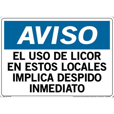 Vestil Notice SignSI-N-23-E-LB-011-S 23 20.5X14.5 Label/Decal.011 The Use of Liquor On These Premises Will Mean Immediate Dismissal EL USO DE LICOR EN ESTOS LOCALES IMPLICA DESPIDO INMEDIATO