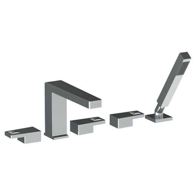 WATERMARK 35-8.1-ED3-PT EDGE 9 5/8 INCH THREE HANDLE DECK MOUNT WIDESPREAD ROMAN TUB FAUCET WITH HANDSHOWER, PEWTER,...