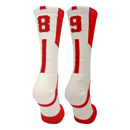 <p><strong>Product Features</strong></p> <ul> <li>SOLD AS A PAIR: Match your Jersey Number</li> <li>SIZING: Shoe Size: Small - Youth 2-6, Medium - Mens 6-9 or Womens 7-10, Large - Mens 9-13 or Womens 10-14</li> <li>Crew Length, Blister Control</li> <li>Arch Compression and Heel/Toe Construction</li> <li>Moisture/Odor Control Antimicrobial, Ergonomic Cushioning</li> </ul> <p><strong>Product Description</strong></p> <p>TCK Player Id Red/White Number Crew Socks (Pair). Sold as a PAIR. Choose your number to match your jersey. High performance athletic socks for all team sports and elite athletes. Shoe Size: Small - Youth 12-5 Womens 4-7, Medium - Womens 7-10 Mens 6-9, Large - Womens 10-13 Mens 9-12, X-Large Womens 13+ Mens 12+.</p> <p></p>