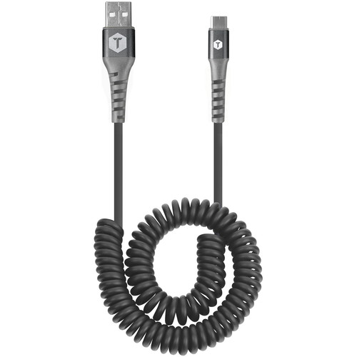 USB CABLE, TYPE C, HEAVY-DUTY, 3A, 17 AWG GAUGE, DUAL LAYER, COILED, BLACK, 10 FT, PLASTIC