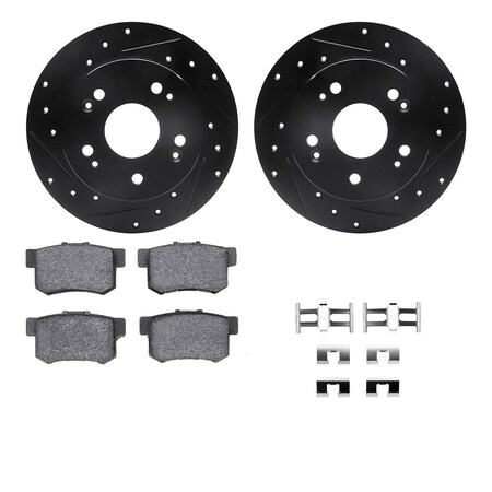 8312-59044, Rotors-Drilled, Slotted-BLK w/ 3000 Series Ceramic Brake Pads incl. Hardware, Zinc Coat