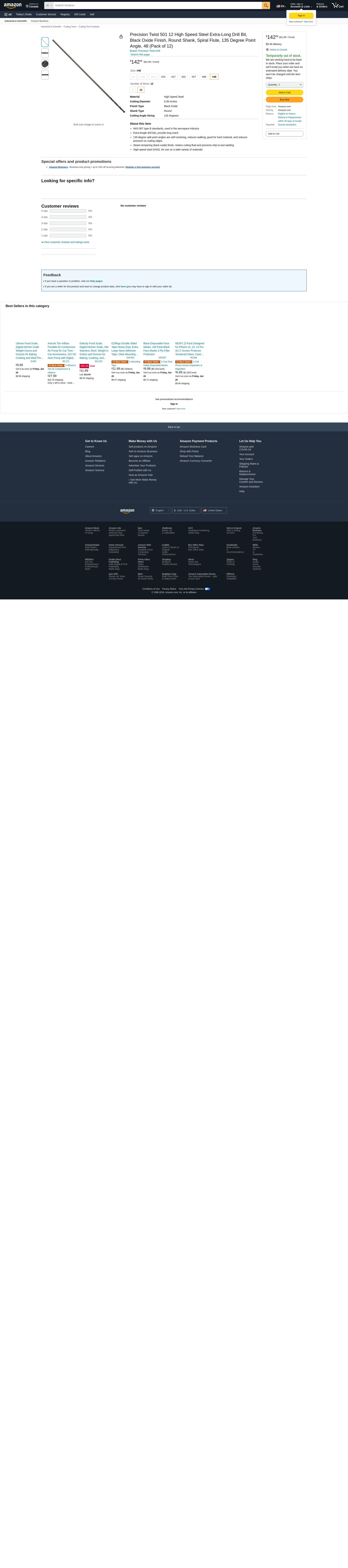 Precision Twist 501 12 High Speed Steel Extra-Long Drill Bit, Black Oxide Finish, Round Shank, Spiral Flute, 135 Degree Point Angle, 48 (Pack of 1)