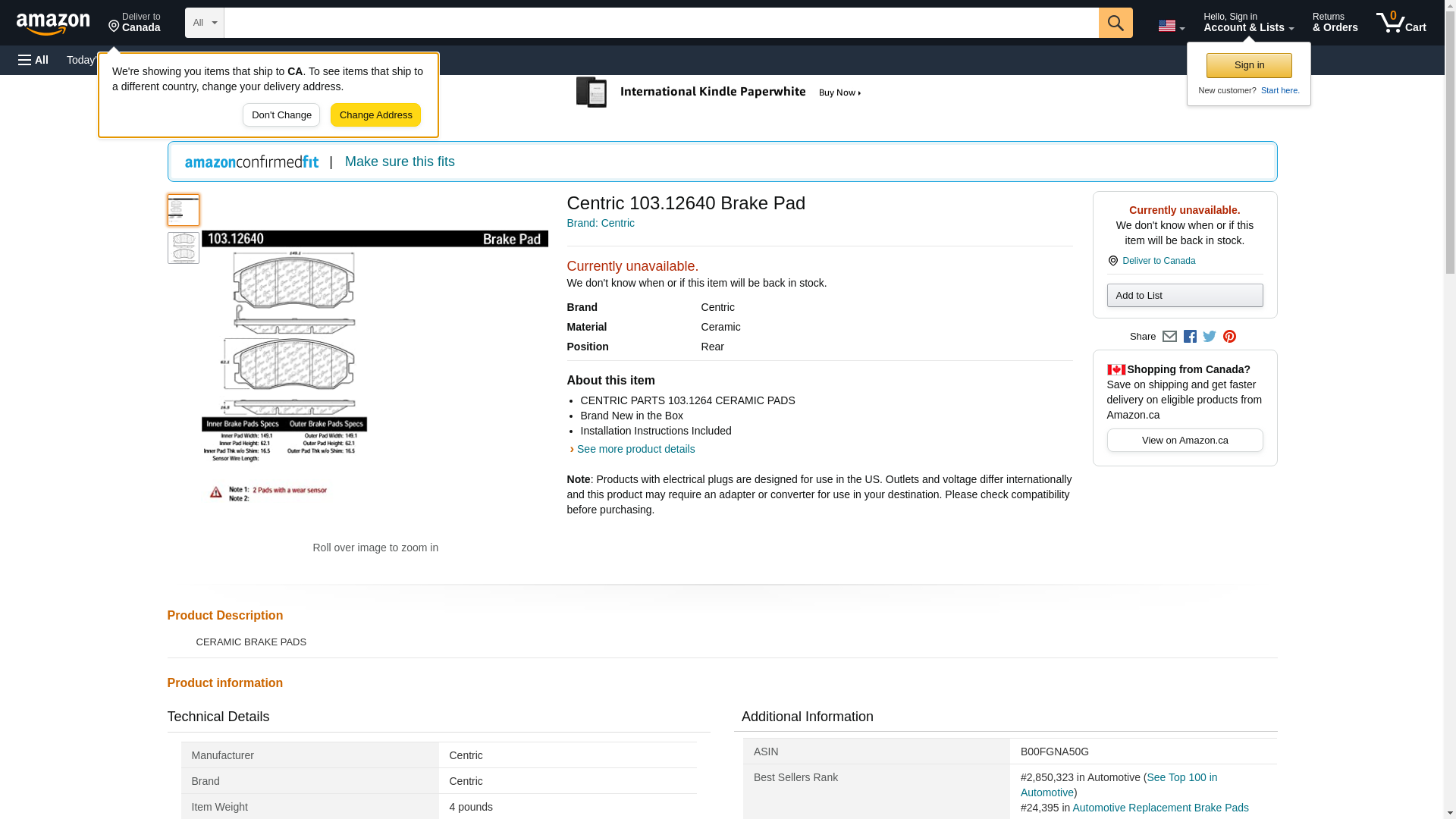 Centric 103.12640 Brake Pad