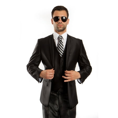 Mens Suit Two Piece Solid Notch Lapel Set With Free Matching Vest