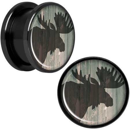 <ul> <li>Gauge size 5/8 inch; 16 millimeters</li> <li>Made with black anodized over 316L stainless steel</li> <li>Features a rustic wood moose logo inlay</li> <li>Made with a screw fit design for easier insertion and removal</li> <li>Sold as a set of 2 holiday moose double flare plugs</li> </ul>