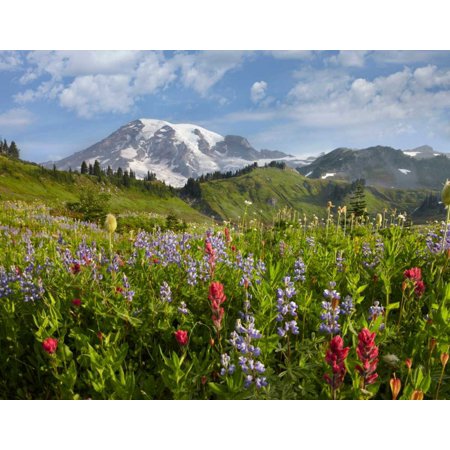 Paradise Meadow and Mount Rainier Mount Rainier National Park Washington Poster Print by Tim Fitzharris
