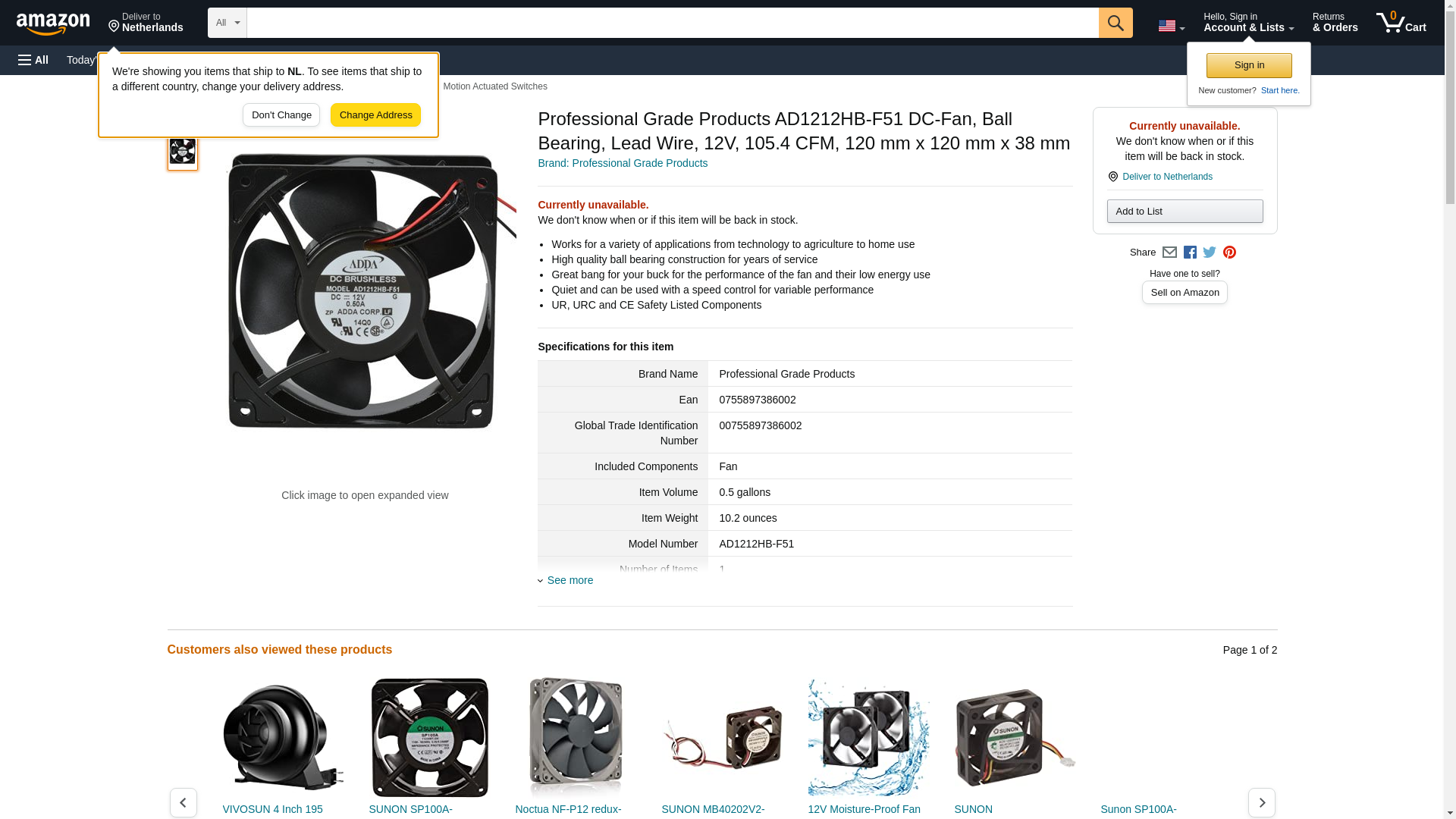 Professional Grade Products AD1212HB-F51 DC-Fan, Ball Bearing, Lead Wire, 12V, 105.4 CFM, 120 mm x 120 mm x 38 mm