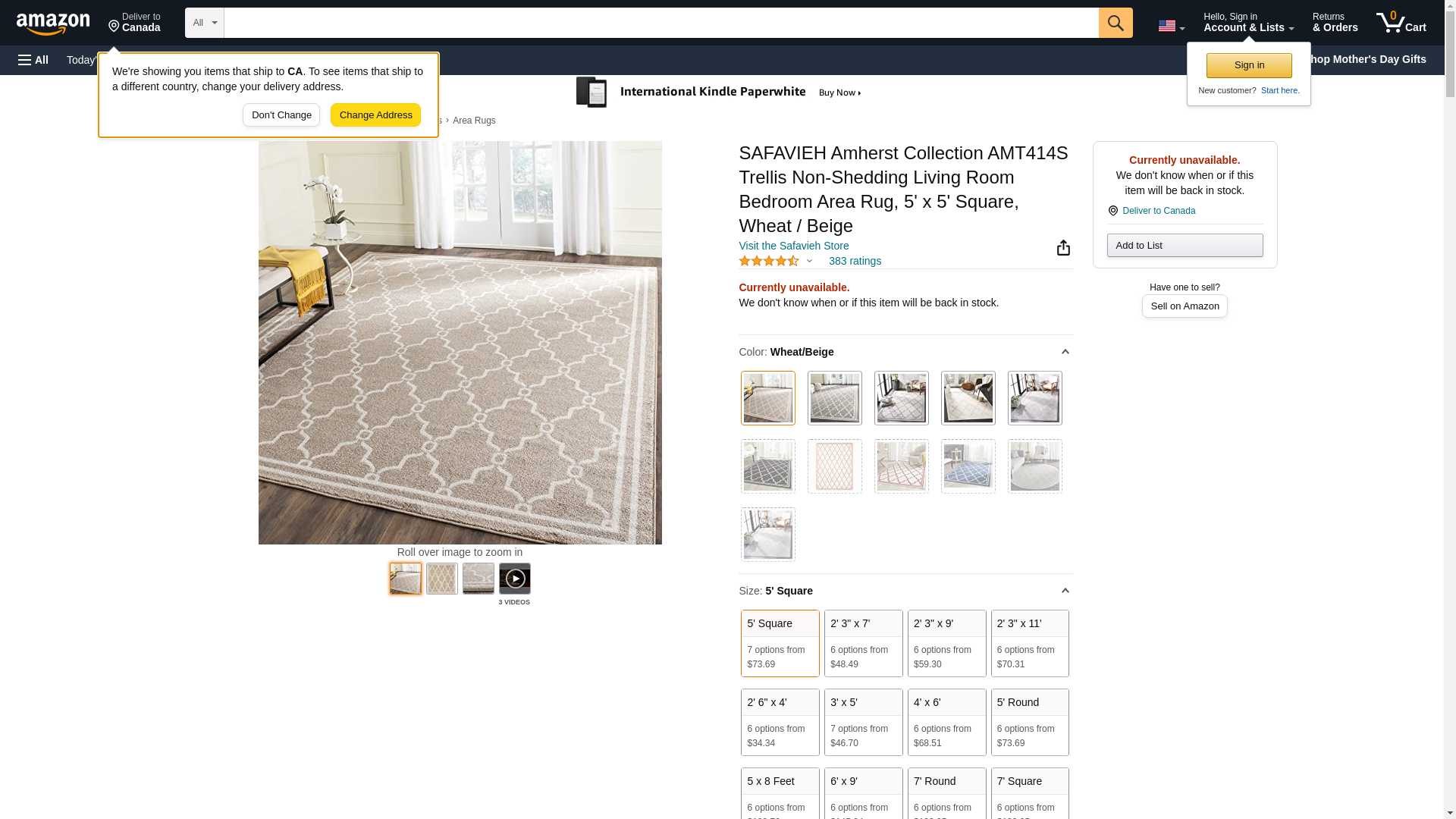 SAFAVIEH Amherst Collection Area Rug - 5' Square, Wheat & Beige, Trellis Design, Non-Shedding & Easy Care, Ideal for High Traffic Areas in Living Room, Bedroom (AMT414S)