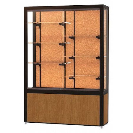 10404CK-BZ-K Backing: Cork, Frame Finish: Dark Bronze, Size: 66" H x 48" W Features: -1/4" Tempered glass sliding door with ground-in finger pulls and locks that are built in to the door frame. -Cork back is made of natural cork and will withstand repeated puncture marks. Product Type: -Trophy display case. Design: -Floor standing. Display Material: -Glass. Country of Manufacture: -United States. Frame Material: -Metal. Adjustable Shelves: -Yes. Dimensions: Shelf Depth - Front to Back: -12". Base/Stand Height - Top to Bottom: -18". Size 66" H x 120" W - Overall Height - Top to Bottom: -66". Size 66" H x 120" W - Overall Width - Side to Side: -120". Size 66" H x 144" W - Overall Width - Side to Side: -144". Size 66" H x 48" W - Overall Product Weight: -425 lbs.