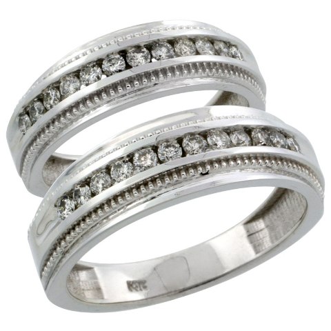 World Jewels 14K White Gold Milgrain Design Diamond Wedding Ring Band Set With 0.62 CT. Brilliant Cut Diamonds, Ladi
