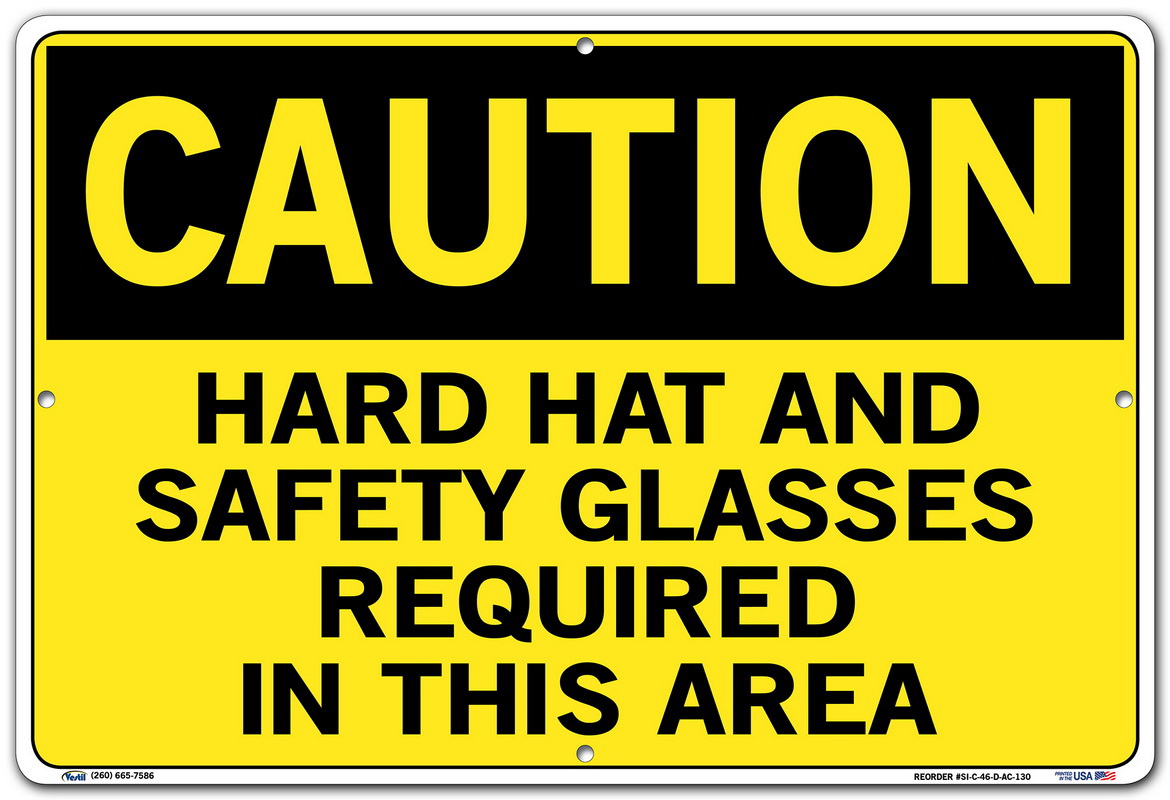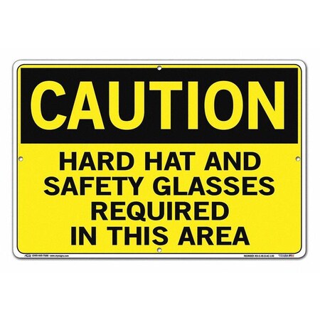 Vestil SI-C-46-D-AC-130 HARD HAT AND SAFETY GLASSES REQUIRED IN THIS AREA Caution Sign, Aluminum Composite, 0.130" Overall Size, 18.5" W x 12.5" H