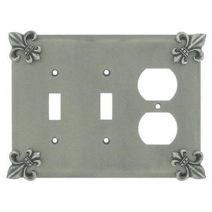 Fleur De Lis Collection - Fleur De Lis 2 Toggle/1 Duplex Outlet Switchplate in Bronze with Black Wash by Anne at Home - 5008-K-231 | MyKnobs
