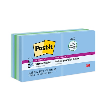 Post-it Super Sticky Recycled Pop-up Notes, 3" x 3", Bora Bora, Pack Of 10 Pads