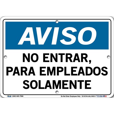 Vestil Notice SignSI-N-54-A-AL-040-S 54 10.5X7.5 Aluminum .040 Do Not Enter Employees Only NO ENTRAR, para EMPLEADOS SOLAMENTE