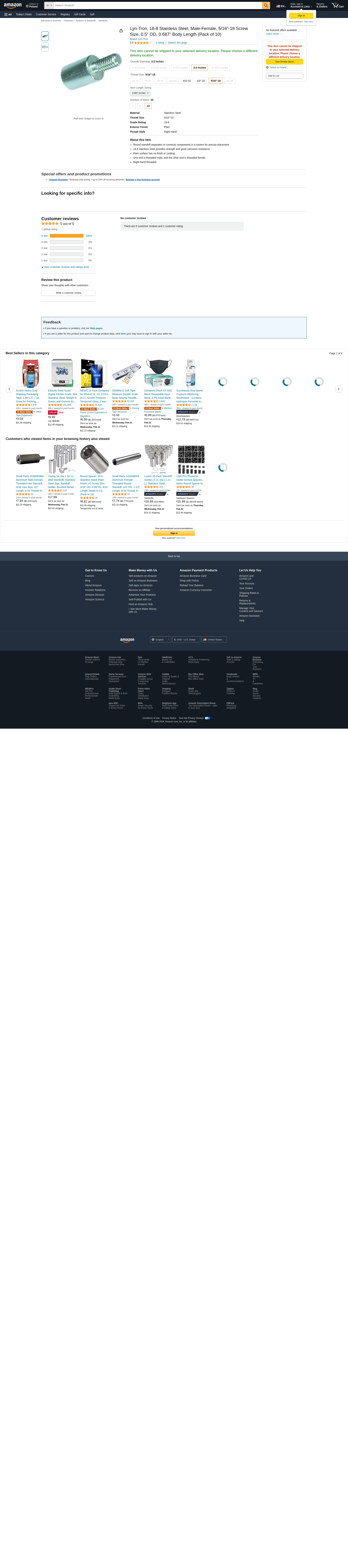Lyn-Tron, 18-8 Stainless Steel, Male-Female, 5/16"-18 Screw Size, 0.5" OD, 0.687" Body Length (Pack of 10)