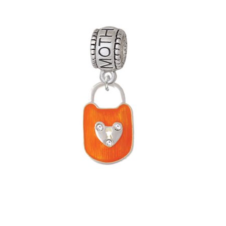 Silver Tone Hot Orange Enamel Lock with Clear Crystals - Mother Charm Bead Hanger. Silver Tone Charm. Charm size is approx. 0.74 x 0.45 x 0.16 inches (HxWxD) including loop. Charm Hanger Bead is approx. 13x10x7 mm (HxWxD) Hole size 5.5 mm. Our Charm Beads are compatible with most Charm Bead Bracelets. Also makes a great charms pendant. Featured charms is an exclusive Delight & Co. design. We are a family owned company for over 35 years in the U.S.A. PLEASE NOTE: Our products are lead safe, but are not intended for children 14 years and younger.