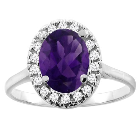 14K Gold Natural Amethyst Halo Ring Oval 9x7mm Diamond Accent, sizes 5 - 10