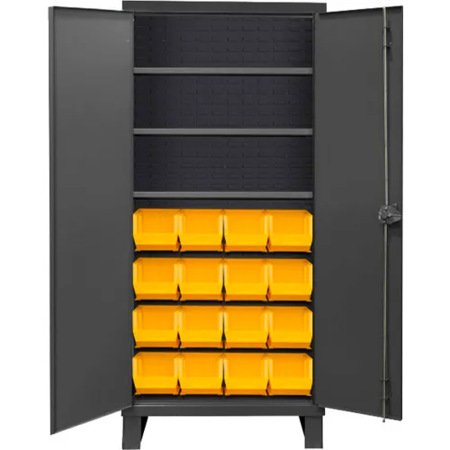 Durham 3702-16-3S-95 Bin and Shelf Cabinet, 78" Overall Height, 36" Overall Width, Total Number of Bins 16