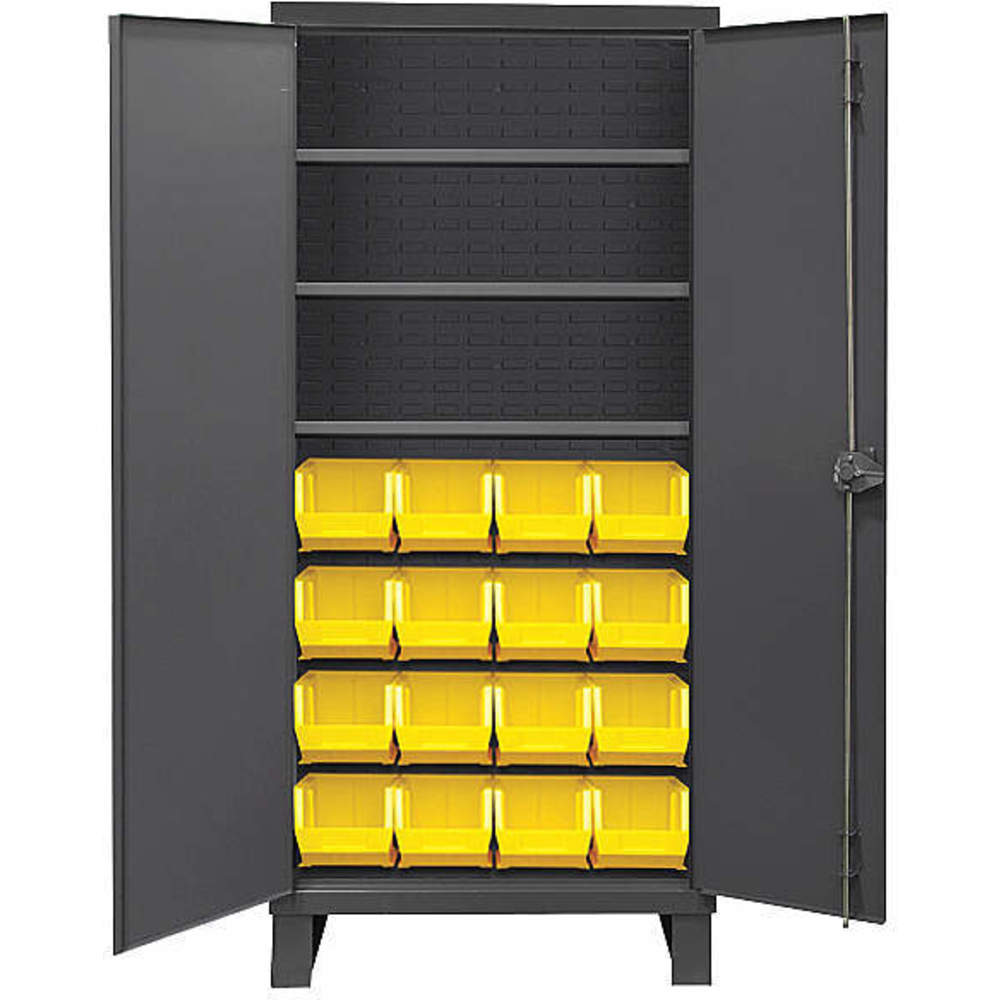 Toolschest.com|Toolschest.com. Durham 3702-16-3S-95 14 Gauge Recessed Door Style Lockable Cabinet with 16 Yellow Hook on Bins & 3 Adjustable Shelves, Gray - 36 in.