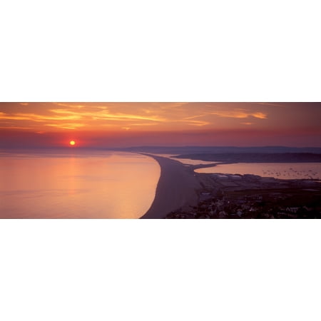 Panoramic Images Stretched Canvas Art - Chesil beach at sunset, Portland, Dorset, England - Large 27 x 9 inch Wall Art Decor Size.