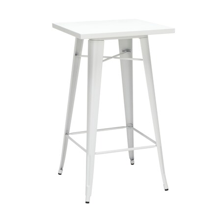OFM 161 Collection Industrial Modern 24" Square Bar Table with Footring, Galvanized Steel Indoor/Outdoor Table, in White