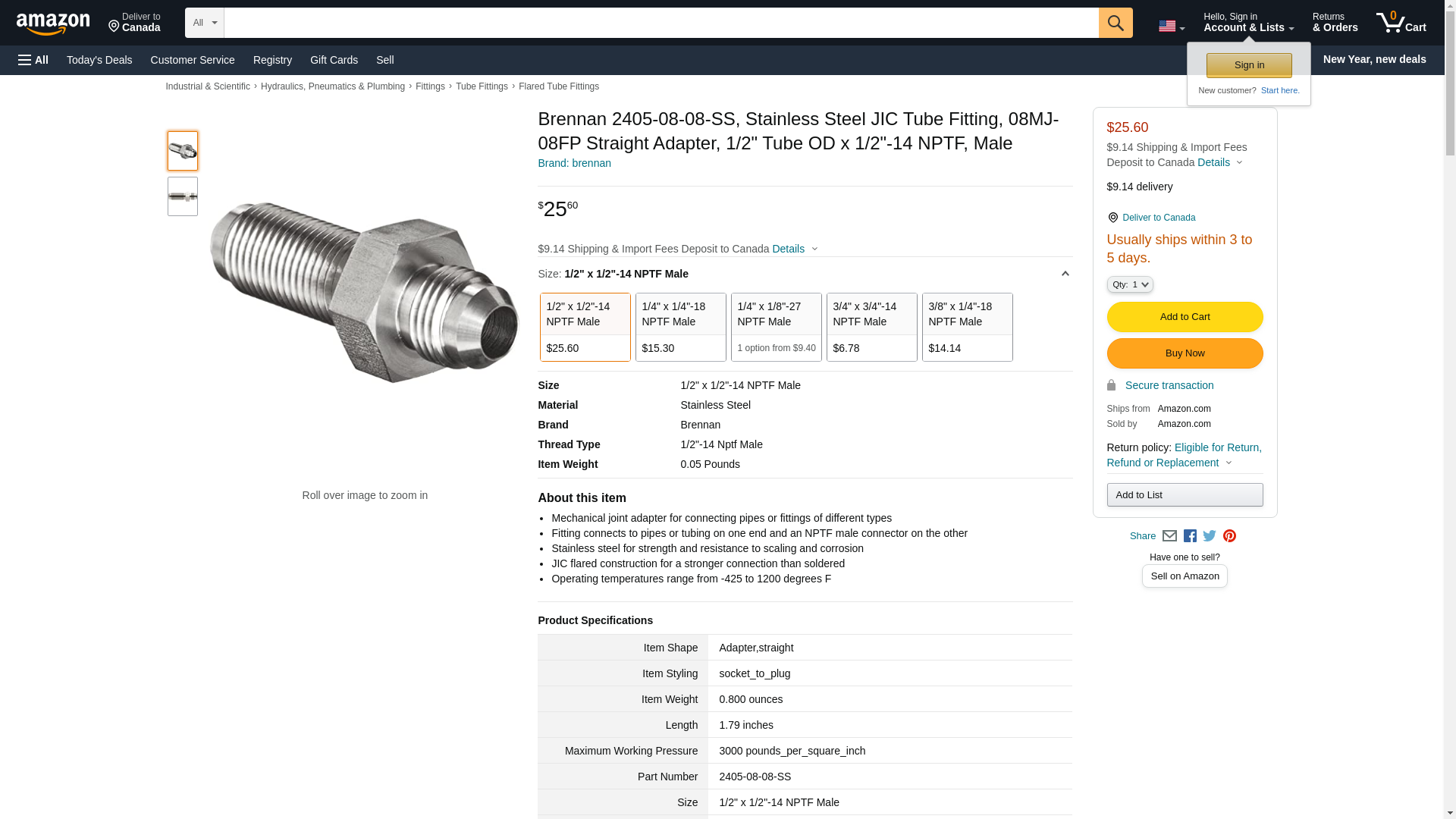 | Airline Hydraulics | BRENNAN 2405-08-08-SS | 1 | 1 | 1 @ $61.76 | |